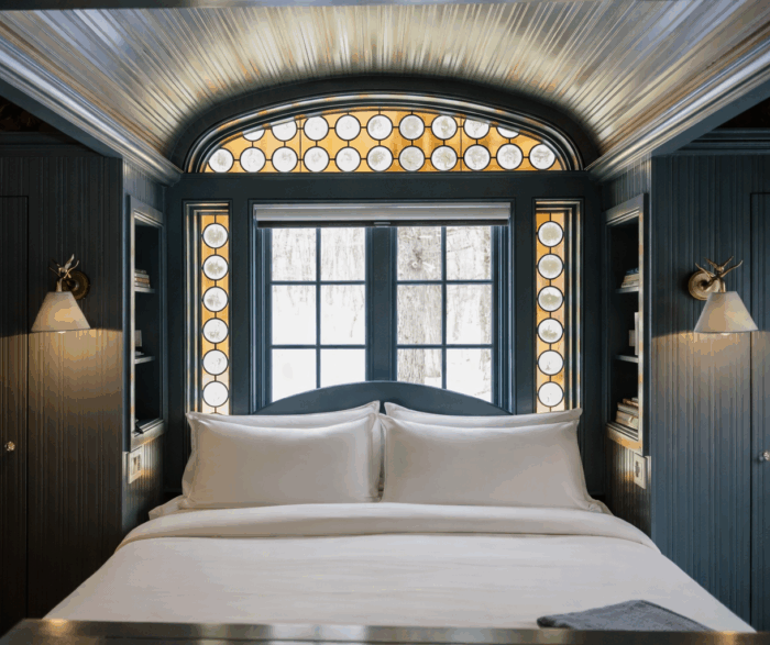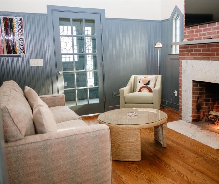 A true original, Artist’s play of light and texture—warm brick, colorful stained glass, curved arches and angular beams—invites guests to experience the beauty of relaxation. Pick up a paintbrush (or a wine glass) and enjoy the attached artist’s studio.