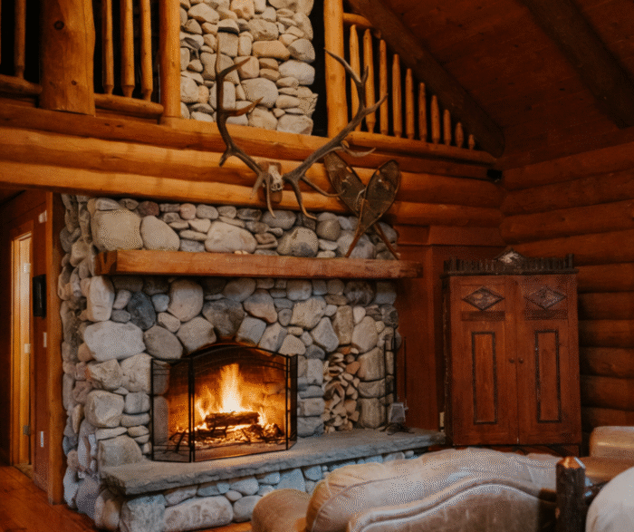 An elegant retreat perched on the edge of the White Memorial Nature Preserve, Log Cabin’s unassuming exterior hides an interior that is nothing short of spectacular. From its high ceiling that showcases a chandelier at once rustic and glam, to the radiant heating in the pebbled bathroom floor, this cottage pairs custom with cozy.
